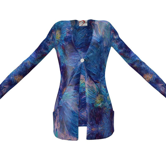 Beautiful Blues Ladies Short Cardigan With Pockets